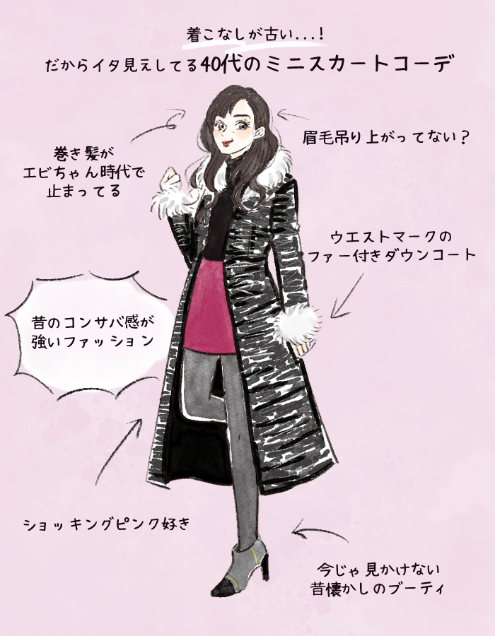 40代以上の大人世代がミニスカートをはいている姿を客観的に見て、「イタいな……」と判断される要素としては以下のようなものがあります。