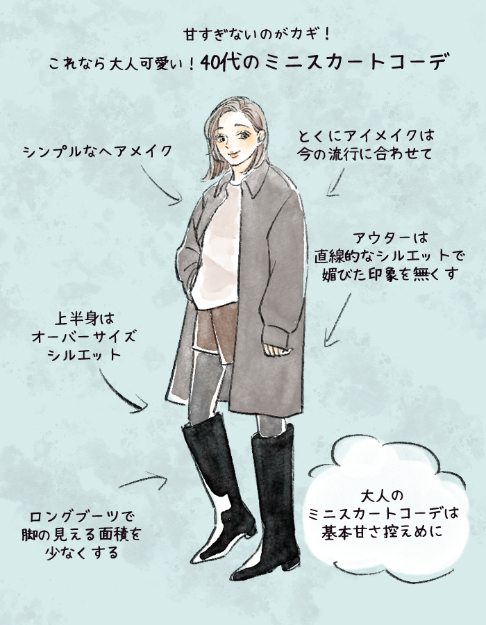 なかなか尽きることのないこの論争に対して、今回はスタイリストである筆者が「40代がミニスカートをはく、その是非」についてお答えいたします。