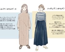 このタイプのニットワンピースはとても多く、しかもよく手に取ってしまうアイテム。着こなし方に工夫をしないと失敗します。