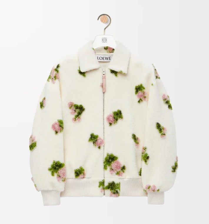 ロエベのお洋服はすっきり端正なロングコートなど上質シンプルなイメージがあったので、このポコポコとしたお花柄のブルゾンがロエベだとは知らず驚きました。