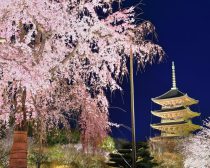 京都駅から徒歩15分ほどで行ける。五重塔をはじめ国宝だらけの、素晴らしい世界遺産。2025年3月15日~4月13日は、夜の特別拝観でライトアップされた桜が見られて息をのむ美しさです(優先入場券が予約できます)。