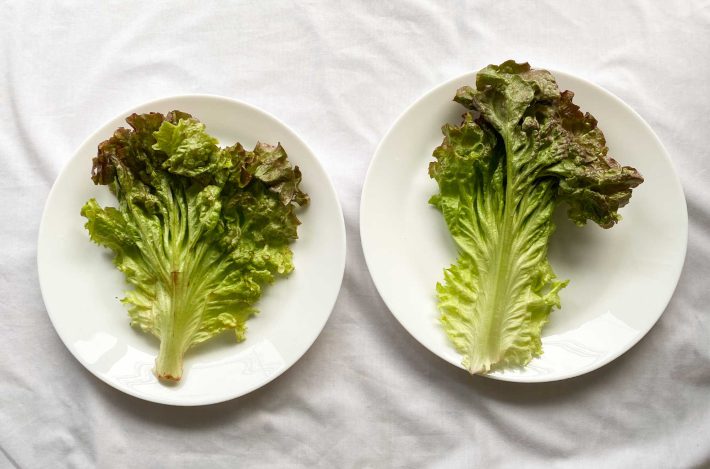 写真左)ポリ袋に入れていたレタス 右)鮮度保持ストックバッグに入れていたレタス