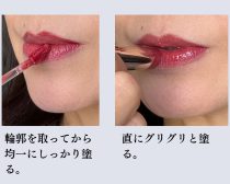 直塗りでグリグリ塗ると、リップの色や質感によっては古臭い印象に見え、老けて見える可能性があります。