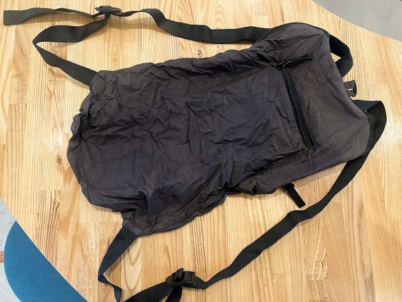 薄いナイロン生地のリュックがギュギュッとコンパクトにたたまれているので、広げてみると思っていたよりもかなり大きい!