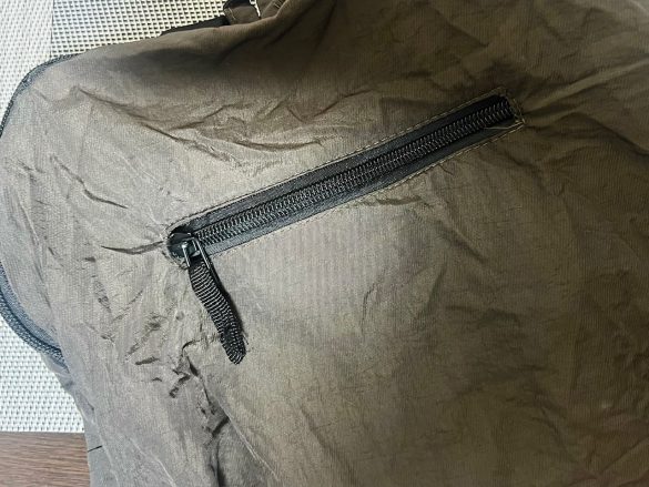 また、たたまれた状態の時のポーチ部分は広げたリュックの裏面上部にあたり、グイッと中に押し込んで収納するとファスナー付きの内ポケットになります。