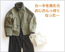 そこで、カーキのアウター(ユニクロ、2990円)を使って、おしゃれに見えるコーデを試してみました。