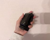 全パーツが折りたたまれた“黒く長細いモノ”の状態で入っていて、スマホを挟む場所やダイヤルがあることはわかりますが、ひと目見ただけではいまいち使い方がわかりません。試しに動きそうな部分を曲げてみようとしたのですが、想像以上に硬くてバキッといってしまいそうで怖くて断念しました。
