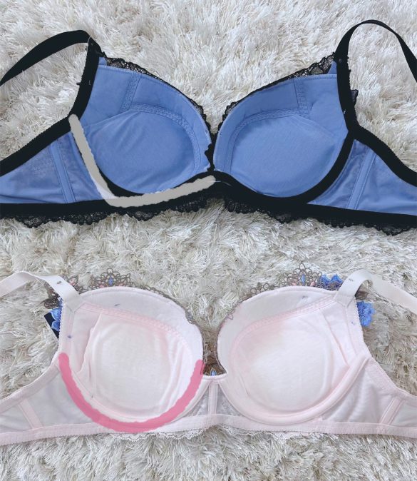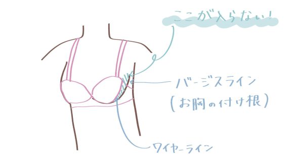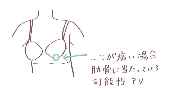 「ワイヤーブラが痛い」と言っても、痛みを感じる部位によって注意するところは変わってきます。真ん中が痛い場合は先ほどお伝えしたワイヤーの形が重要なのですが、両脇が痛い場合はワイヤーの形だけじゃなくサイズも見直してみましょう。