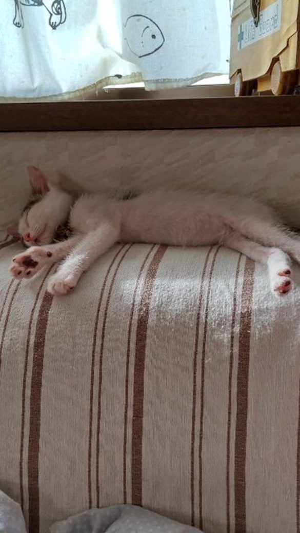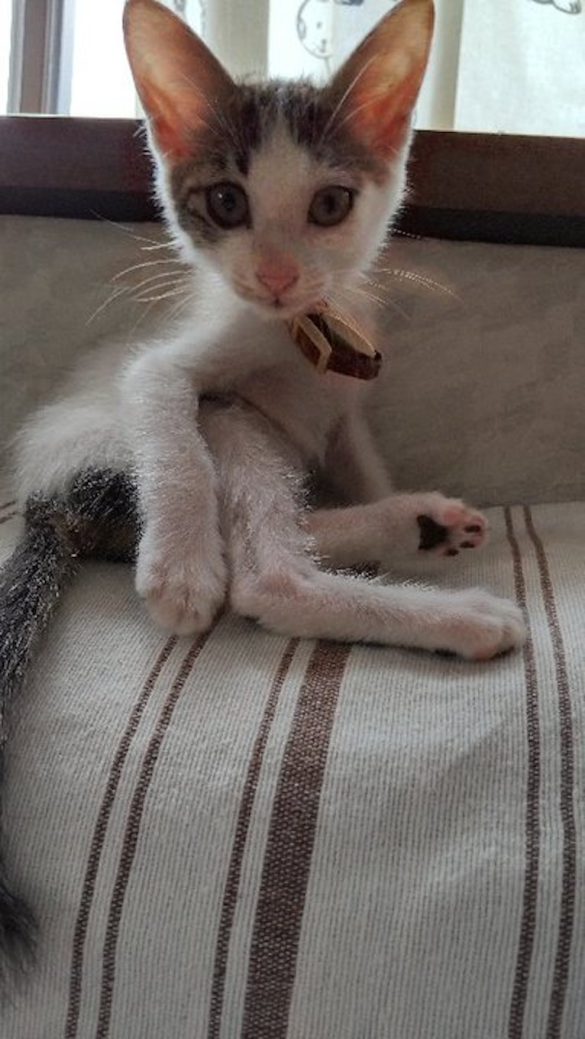 すぐに動物病院へ行くと、猫風邪を患っており、さらに栄養失調であるとの診断が下ります。体にはノミ、体内には回虫もいました。