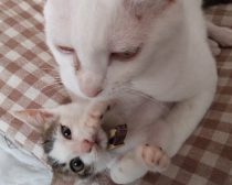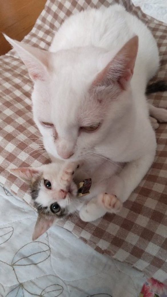 こうして元気になったあずきくんは、人見知りも猫見知りもしない性格に成長。バニラさん宅で暮らす3匹の先住猫たちに甘えるようになりました。