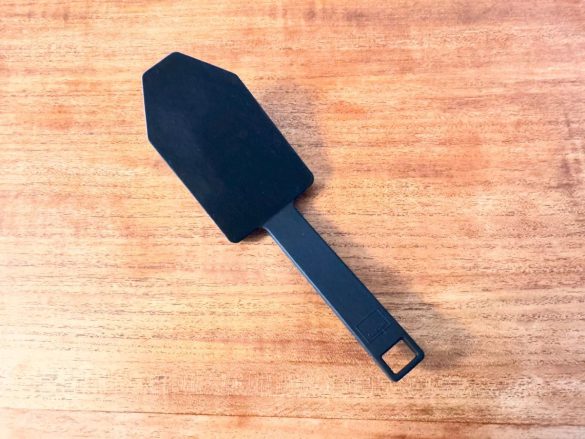 先端がしなり力を入れやすく、フライパンや鍋の角にもしっかりフィットしてくれます。力を入れても食器や調理器具を傷つけない素材なので安心。予洗い専用なのでもちろんこれ1つで汚れがすっきり落ちるわけではないものの、食器に残った料理やソース類を除去するのにとても役立ちます。