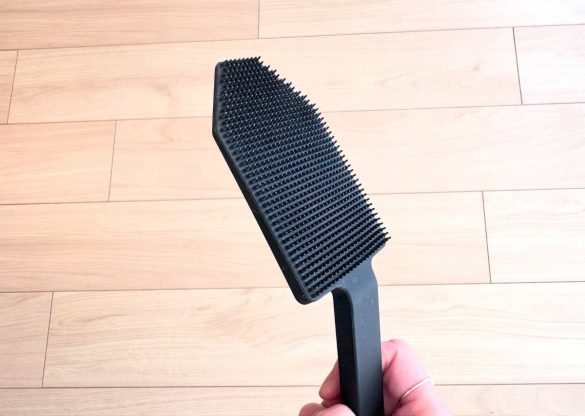 ハンドルの付いたシリコーン製のスポンジは片面が細かなブラシになっており、しつこいカレー汚れなどもしっかり落としてくれます。