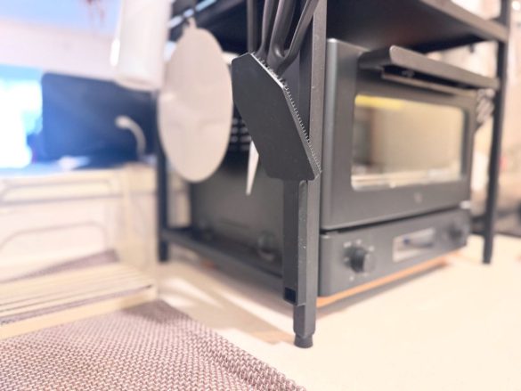 ハンドル部分にはマグネットが内蔵されていて、使わない時には磁石のつく壁やラックなどにくっつけておくことができます。フック穴もあり、かけて収納することも可能です。