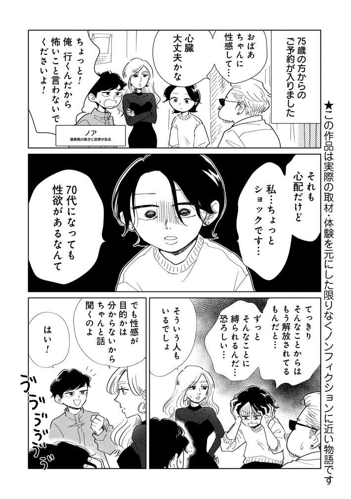 著者のヤチナツさんが描く同作は、様々な立場や年齢の女性客の本音に迫り、彼女たちの心情をリアルに表現。女性用風俗(女風/ジョフウ)の裏方として働く主人公・あかりが、アラサー処女やセックスレスといった女性客のお悩みに、セラピストたちと協力しながら寄り添います。