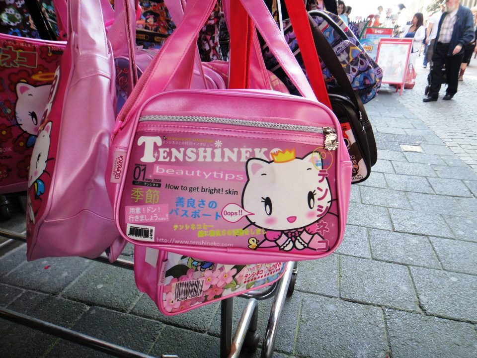 アントワープの商店街には謎の日本風キャラのカバンが売られていました