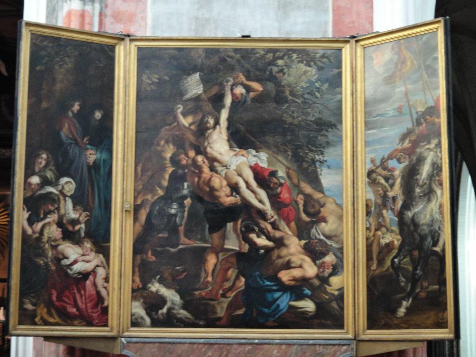 ノートルダム大聖堂にかかっているルーベンスの絵画「キリスト昇架」。ネロが最期にみたといわれる二枚の絵画のうちのひとつ