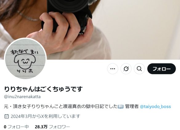 「頂き女子りりちゃん」として恋愛感情を利用して男性から大金を騙し取ったりその手法をマニュアル化して販売したりして2023年8月に逮捕された渡辺真衣受刑者(以下、りりちゃん)。