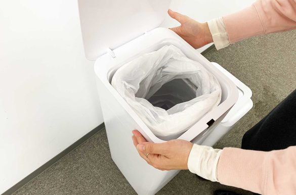 「ゴミ袋は、半透明のもの採用して、自治体の回収基準にも適合させています。他社製品は黒いゴミ袋を使うものがあり、自治体によっては回収してもらえないケースもあるんですよ。