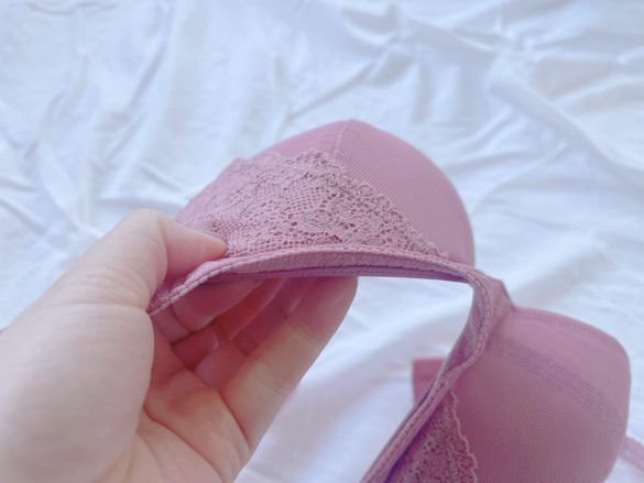 さらに、カップはサイドがすっきりしやすいパターンかつ、カップサイドに付いているレースがストラップまでしっかりあるので、カップにもしっかり入れてくれます。
