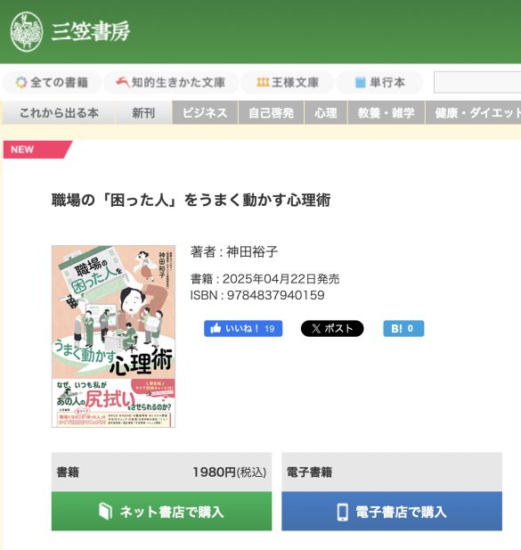 2025年4月24日に発売予定の産業カウンセラーの神田裕子さん著『職場の「困った人」をうまく動かす心理術』(三笠書房)という書籍が注目を浴びています。