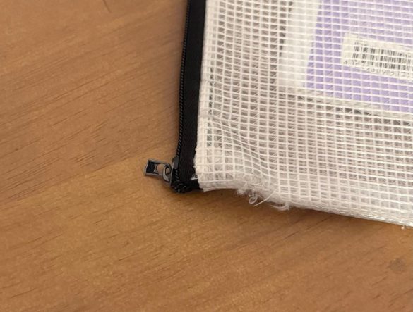 ファスナーの引き手も折れていました。ここって折れるんだ……。普段連絡袋の中身のみ提出してくるので、この惨状に全く気付きませんでした。