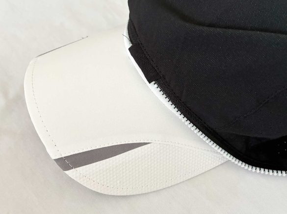 特におすすめしたいのが、キャップとの合わせ技。キャップの上からフードをかぶると、顔にも首にも日が当たりません。しかも、ファスナーを開けた状態でも、帽子のつばにファスナーのギザギザが引っかかってくれるので、風が吹いてもずれにくいところが嬉しい。