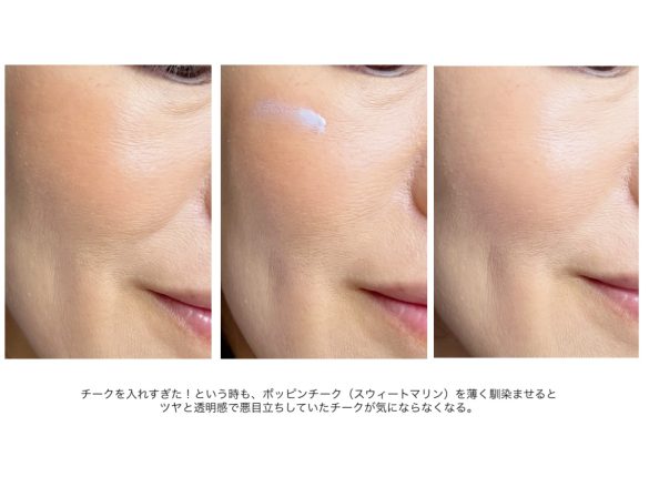 透明感やツヤ感が簡単に作れるので、ハイライトとしても大活躍。頬の高い位置にさっと入れるとくすみも払拭してくれます。