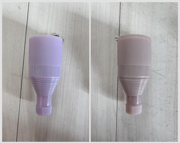 開けてみると、見た目もほとんど同じ! プラスチックでできた筒状の傘ケースです。なんだか、牛の乳搾りのような形で、ボールチェーンはあっても、かばんに付けたくないなと思ってしまいました。