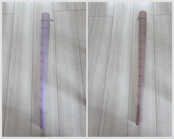 どちらも、素材はポリプロピレンと記載。手に取った感じの厚みや重さもほとんど同じです。最大まで伸ばしてみると、98cm。12段階まで延長できました。