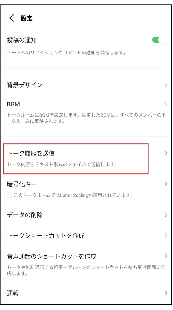 ④「トーク履歴を送信」をタップ