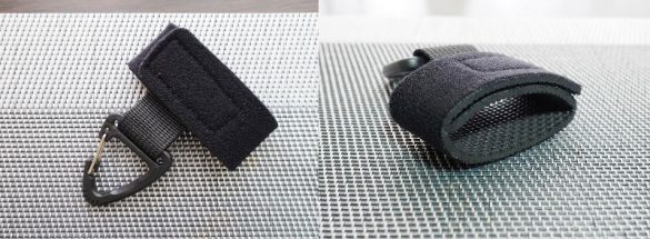 肩ひもに取り付ける“ベルトタイプ”のカラビナが便利