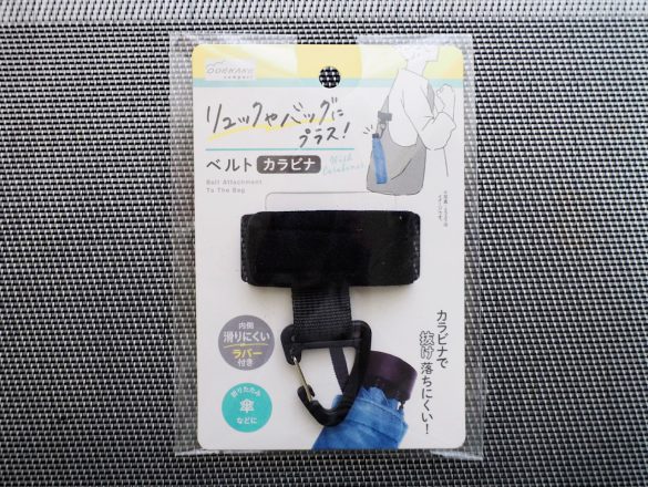 ――ということで、今回注目したのはセリアで購入した「リュックにプラス ベルトカラビナ」です。