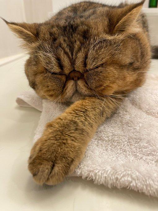 ママさんをこよなく愛す銀くんは、入浴にもお供するそう。タオルを敷いた浴槽の蓋に乗る姿は、まるでサウナを楽しんでいるかのようです。