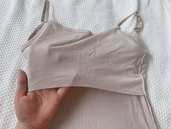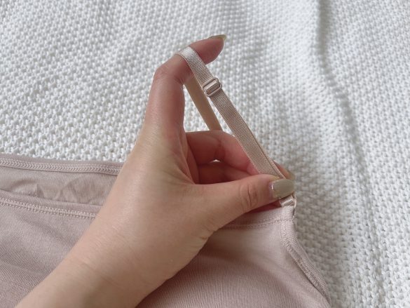 しかし、アセドロンのブラキャミソールはフリーカットになっているので締め付け感を軽減できるだけではなく、段差ができにくくトップスのシルエットを邪魔しないのもうれしいポイントです。