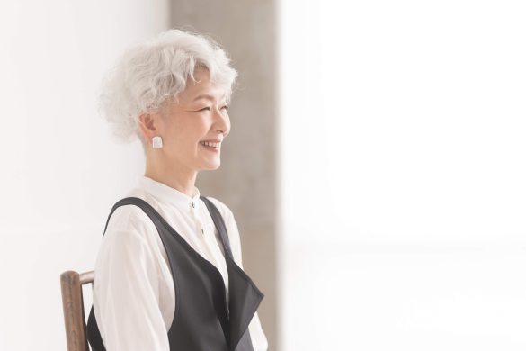 きれいなグレイヘアが印象的なシニアモデル・野田ユカさん(63歳)。雑誌、ウェブコマーシャル、ミュージックビデオなどで見掛けたことがある人もいるのではないでしょうか?