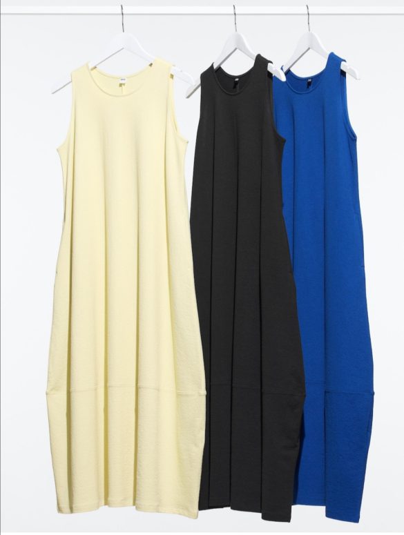 今期新作のユニクロの「ジャージーバルーンワンピース/ノースリーブ」。ジャージー素材で生地が厚く、夏以外でも着られそうな1枚。