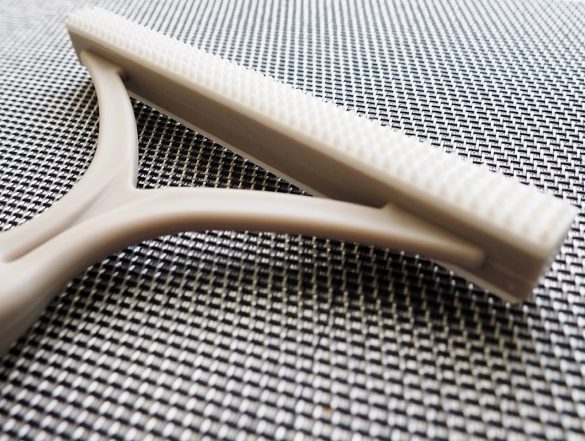衣類やカーペットについたペットの抜け毛・毛玉を取り除いてくれるダイソーの「エチケットブラシ」。まずは、本体を詳しく見ていきます。