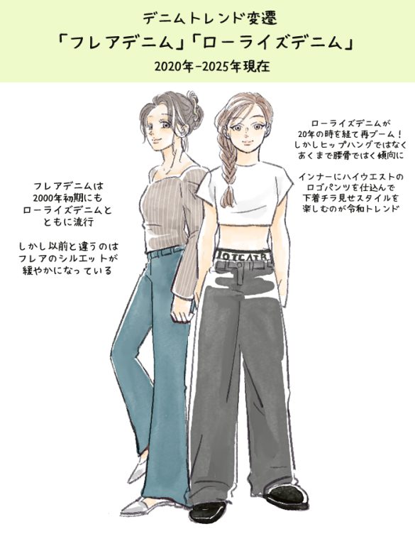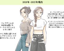もう一方で流行したのは裾をロールアップさせたデザインのボーイフレンドデニム。ストレートシルエットよりも少しゆとりがあり、でもワイドパンツほどではない絶妙なゆるさがカジュアル女子の間で流行していました。