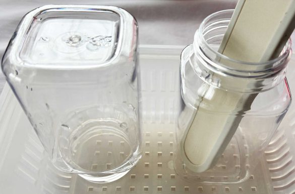逆さにしていた方にはまだ水滴が残っていたのに対し、スティックを入れておいた容器は内側までしっかり乾いていました。