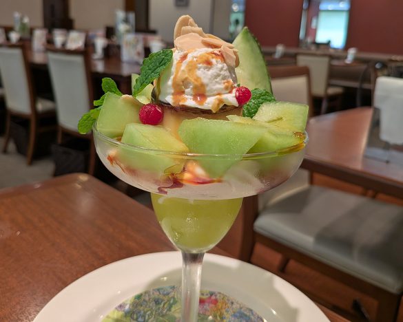 今回すべての商品を実食しましたが、特に大きな感動があったのは、新商品の「メロンのプリン・ア・ラ・モードパフェ」(税込1738円)。