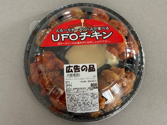 真ん中にあるチーズソースは「温めずにお召し上がりください」とのこと。チーズは冷たいままチキンをディップして食べます。チーズ部分に蓋がないので持ち帰るときにチーズがこぼれてしまったのが残念ポイントでした。一つの容器にチーズとチキンがのっているため、温める際にチキンを一度取り出す手間があるのも含めると、容器だけ別になっていると嬉しいなと思いました。