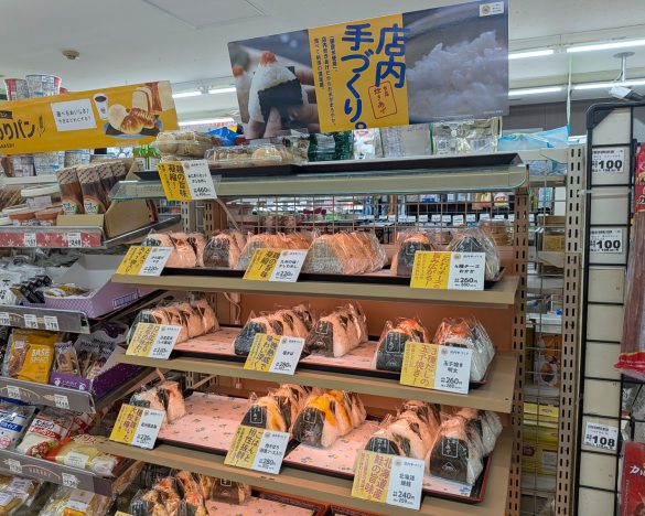 店内には“店内手づくり”の専用コーナーがあり、実際に足を運んでみればその魅力は一目瞭然。おにぎり専門店のようなこだわり具材がたっぷり入ったボリューム満点のおにぎりがドーンと並んでいるのです。この光景はしみじみ幸せな気分に……。