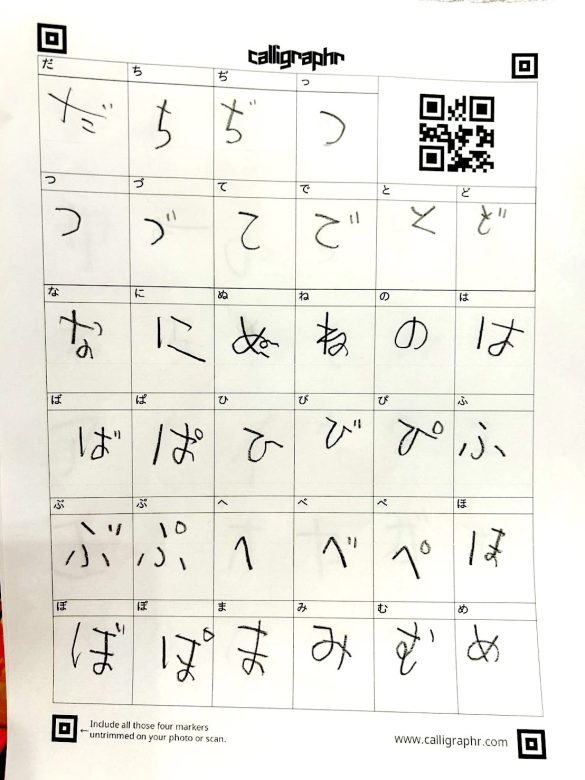 ③ ②で選んだ「こどもフォント」で打てる字を、実際に子どもに書いてもらう。今回のフォント作成では、ひらがな、カタカナ、濁音や句読点なども含め、全170文字に及んだ。
