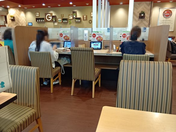 「ガスト」は一時期から1人客を取り込むことに力を入れており、高田馬場駅前店でも1人でものんびりできそうな1人用の席が複数ある。