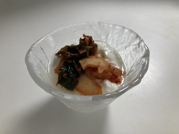 まるでクリームチーズのような味や食感にもなるヨーグルト。納豆と同じ発酵食品であるキムチとも実は相性がいいそうなので、こちらも試してみました!