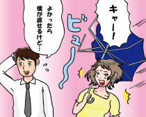 「そしたらいきなり突風が吹いて、私のお気に入りの傘がひっくり返りあっという間に変形してしまったんですよ」