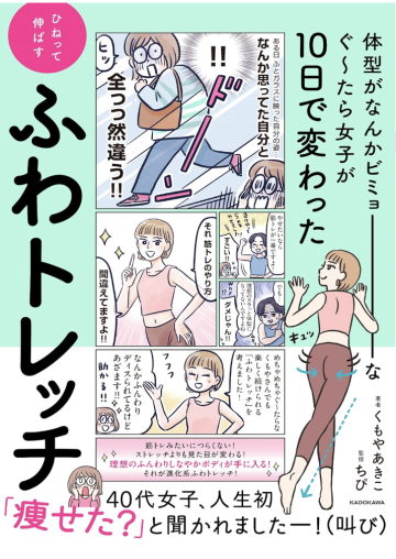 『体型がなんかビミョーなぐ~たら女子が10日で変わった ひねって伸ばす ふわトレッチ』(KADOKAWA、くもや あきこ著、ちぴ監修)より