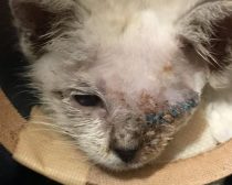 子猫は、モゾモゾと動く程度。とても衰弱しているように見えたため、夫婦はすぐに救急動物病院へ。すぐに左目の眼球摘出手術が行われました。