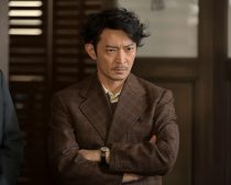 耳を傾けながらメモ用紙に鉛筆で書き付けていると、ひと際張りのある声の持ち主がいる。津田演じる高知新報の主任・東海林明である。部下の岩清水信司(倉悠貴)相手にへべれけながら、愉快に弁舌をふるう。