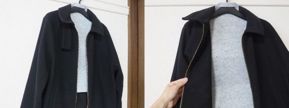52×26cmのシートは、ジャケットの前面・背面だけでなく脇の下にも軽く触れるサイズ感。本体上部がジャケットの襟元からはみ出す程度なので、さほど目立ちません。